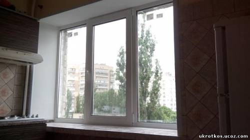Трёх-секционное окно в кирпичном доме. Откосы из гипсокартона.